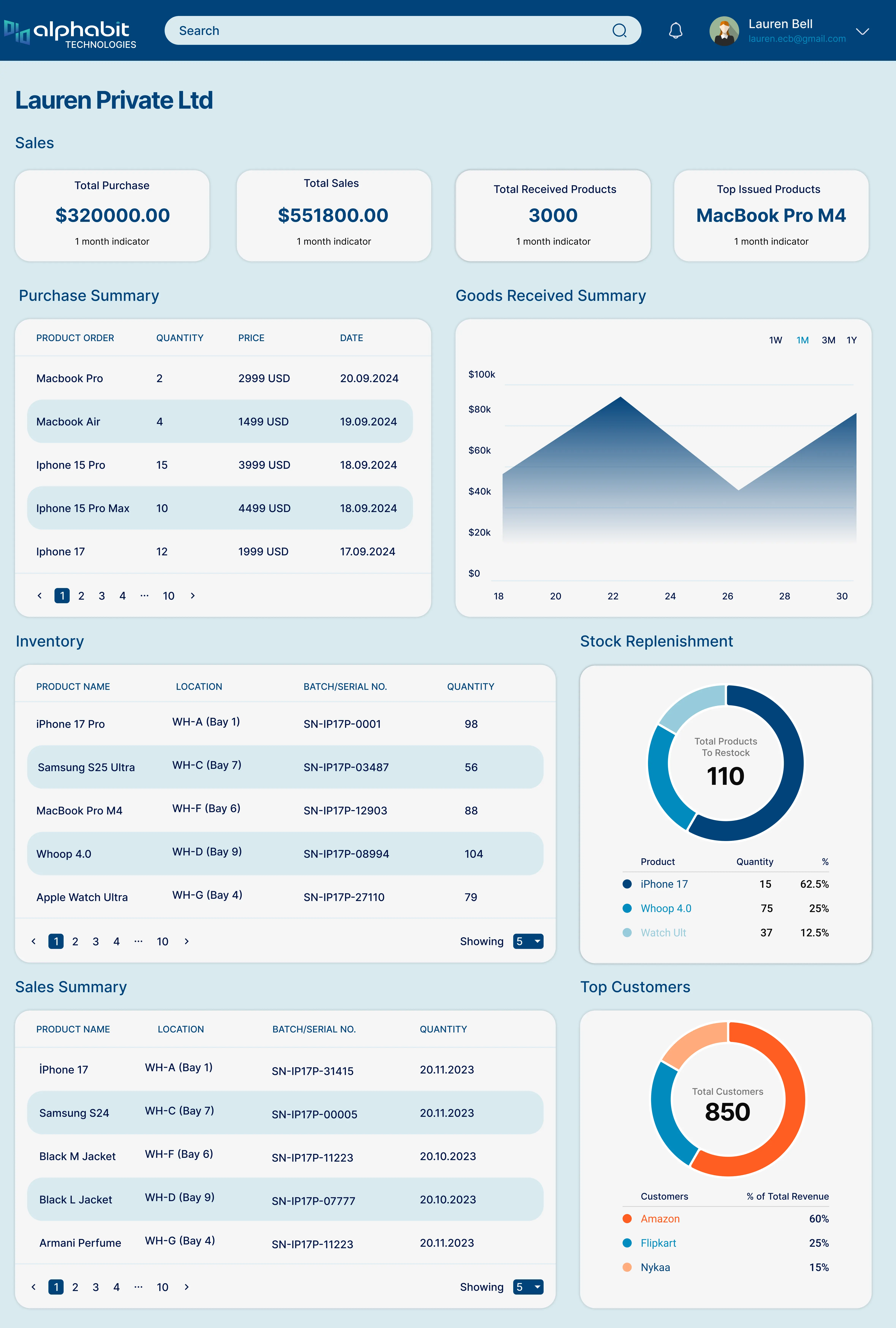 - Use Alphabit AI-driven forecasting to anticipate demand, optimize inventory levels, and improve supply chain efficiency.